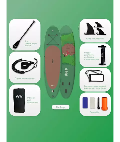 В комплект входит насос и весло, что делает доску готовой к использованию сразу после покупки. Насос обеспечивает удобство и скорость подготовки доски к использованию, а весло позволяет эффективно грести и управлять доской. Это делает HIPER SUPB-0147 идеальным выбором для активного отдыха на воде.