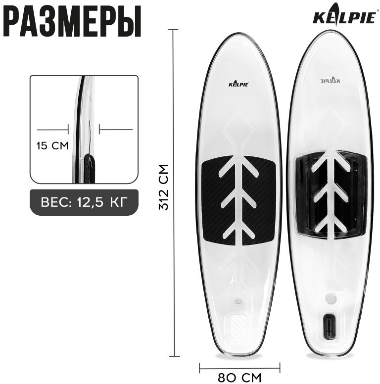 SUP-доска KELPIE 312х85х13 см прозрачная, для сёрфинга