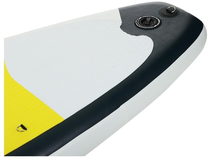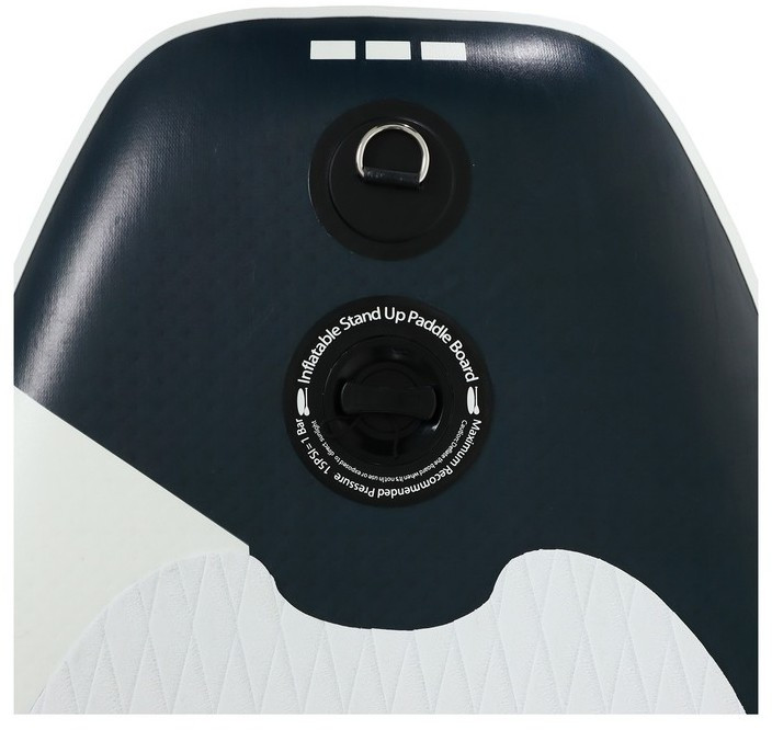 - Запирающийся нажимной клапан с защитой от повреждений обеспечивает лучшую герметичность. Кнопочная система помогает без труда приспустить давление в доске нажав на кнопку в клапане.
