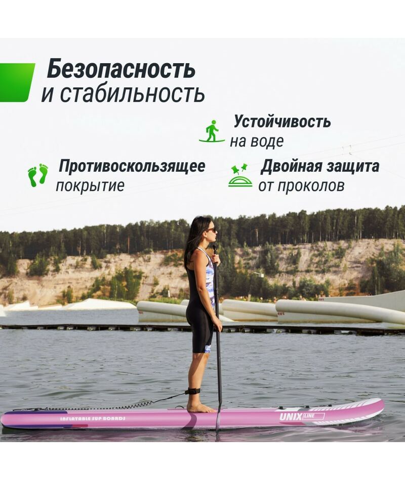 Почувствуйте себя свободным с безопасным и стильным SUP-бордом от UNIX Line, наслаждаясь кристально чистой водой и живописными пейзажами!