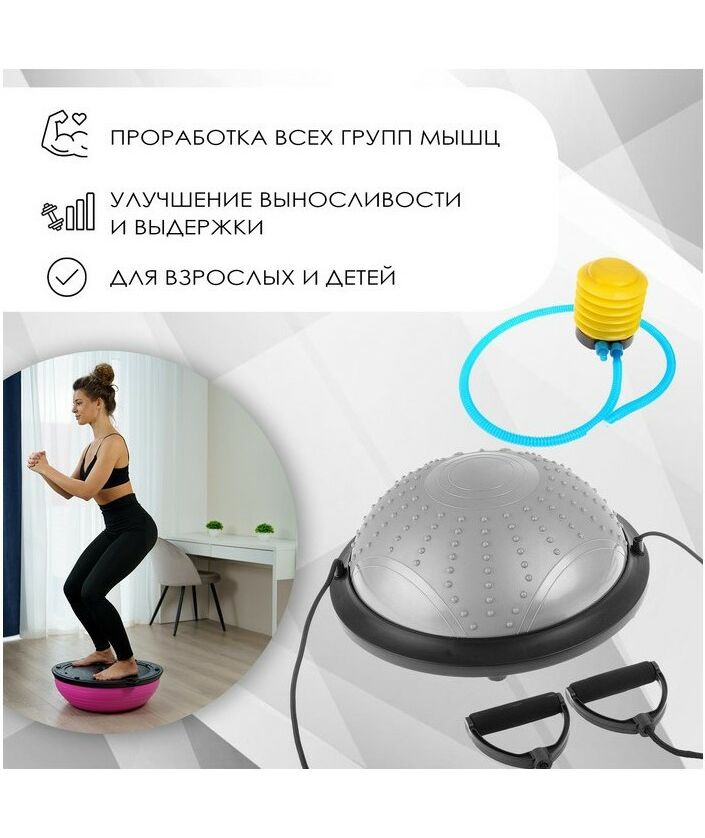 Полусфера BOSU гимнастическая массажная 46 х 20 см с насосом, цвет серый