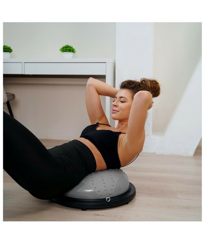 Полусфера представляет собой сбалансированную эластичную платформу в виде полусферы. Используется для проведения силовых, гимнастических или аэробных тренировок. Занятия на полусфере помогают проработать все группы мышц, улучшить выносливость и выдержку.