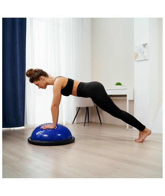 Подходит для взрослых и детей с любым уровнем физической подготовки. Но новичкам не рекомендуются тренировки на плоской стороне сферы. Без дополнительной подготовки нужно заниматься под присмотром тренера. Рекомендуем приступать к упражнениям только после разминки или растяжки, иначе можно повредить мышцы.