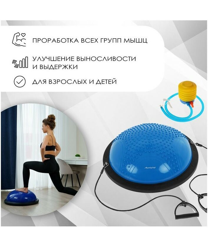 Полусфера BOSU гимнастическая массажная 55 х 25 см с насосом, цвет синий