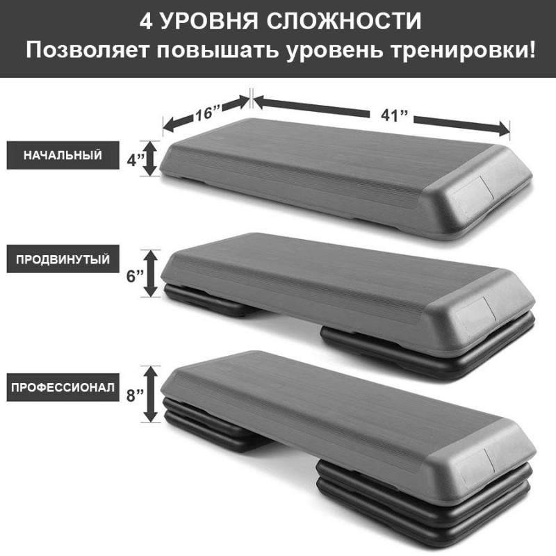 Gymmaster ANA-533A - это регулируемая платформа сборной конструкции. Для регулировки высоты установлены опоры изменяемой конфигурации с несколькими отделяемыми секциями. Две пары подставок дают возможность устанавливать 3 уровня высоты - 10, 15 и 20 см. Резиновые нескользящие ножки обеспечивают устойчивое положение на любой поверхности. Благодаря компактным размерам, степ с легкостью разместится в любой из комнат вашего дома или в фитнес зале. Возможно удобное хранение в стопках - одна на другой.