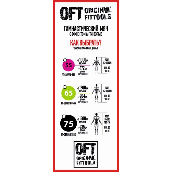 Гимнастический мяч Original FitTools FT-GBR-55FX 55 см фуксия с насосом