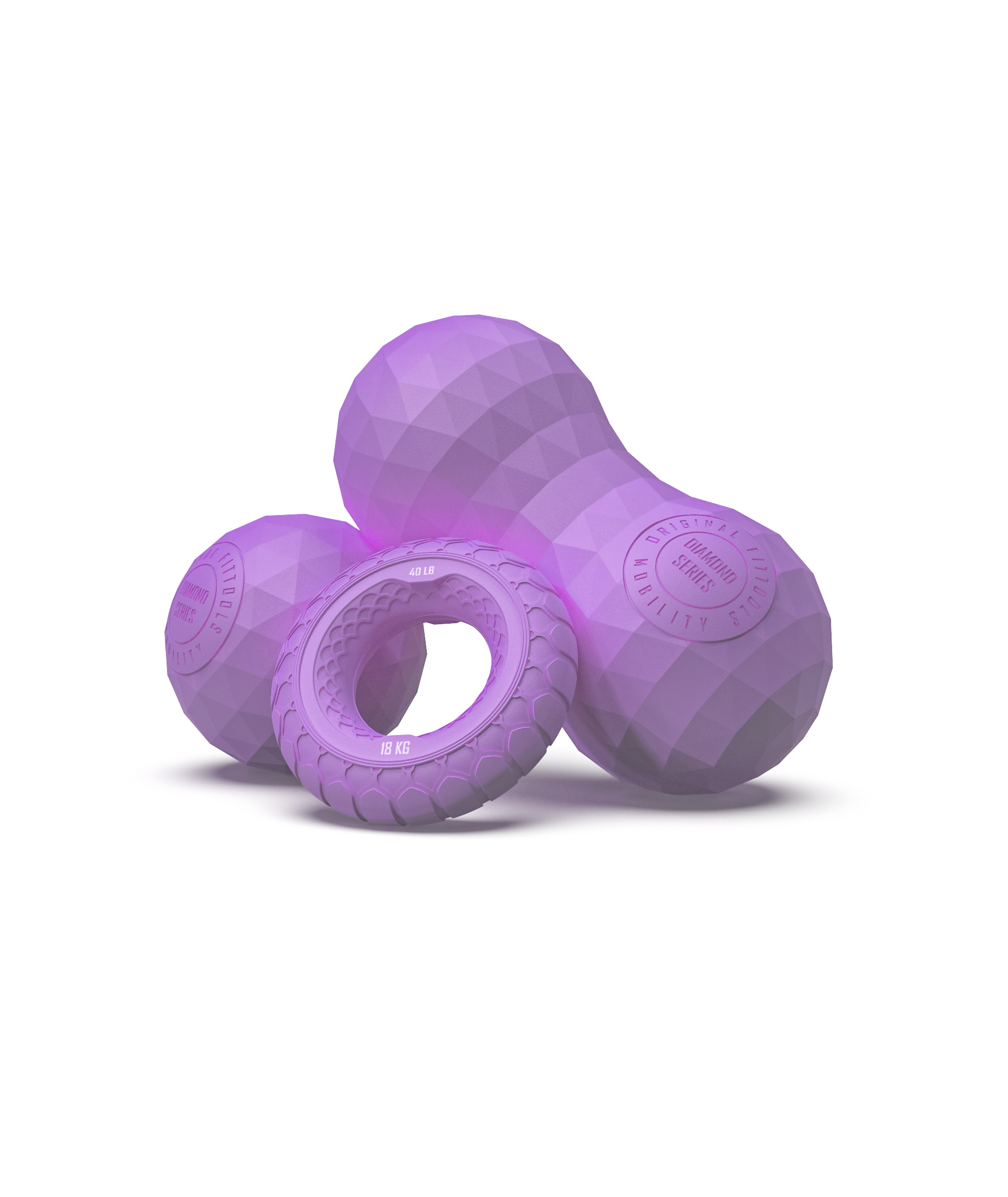 Набор из двух массажных мячей с кистевым эспандером Original FitTools FT-SM3ST-PP пурпурный