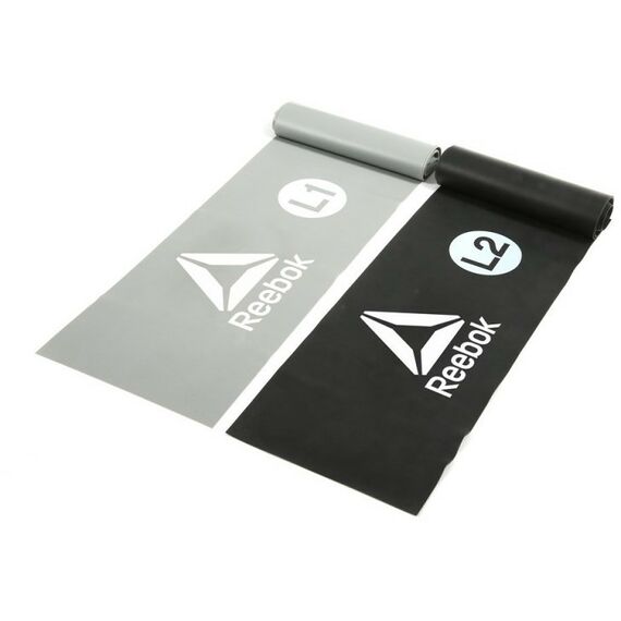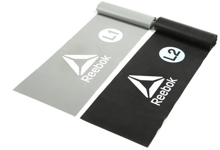 - Тренировочные эспандеры Reebok, изготовленные из прочного латексного материала, с двумя разными уровнями сопротивления.