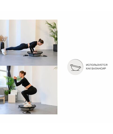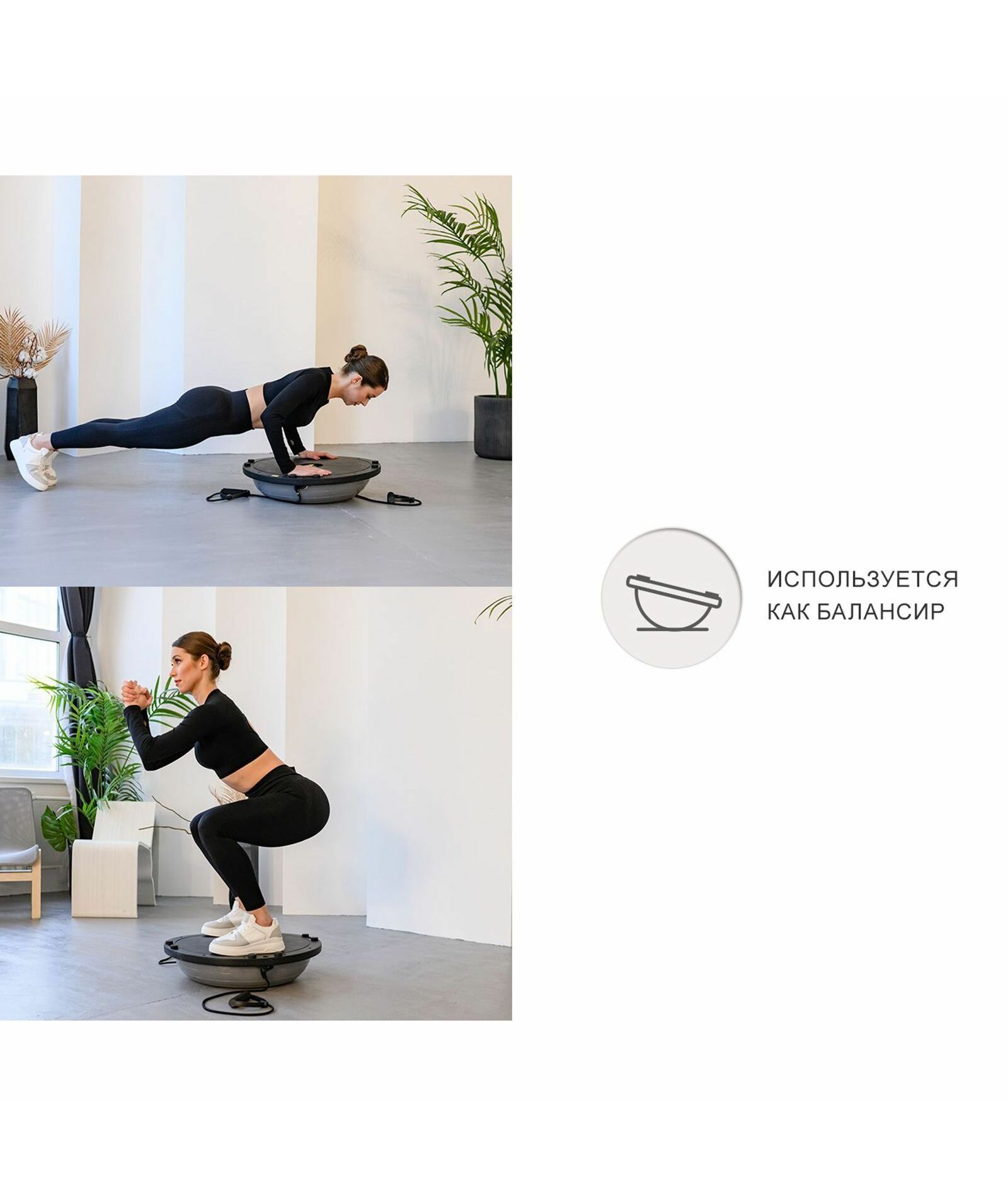 - Комплектация: Балансировочная полусфера, эспандеры, насос