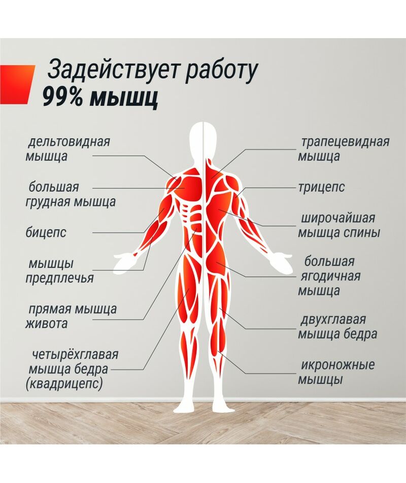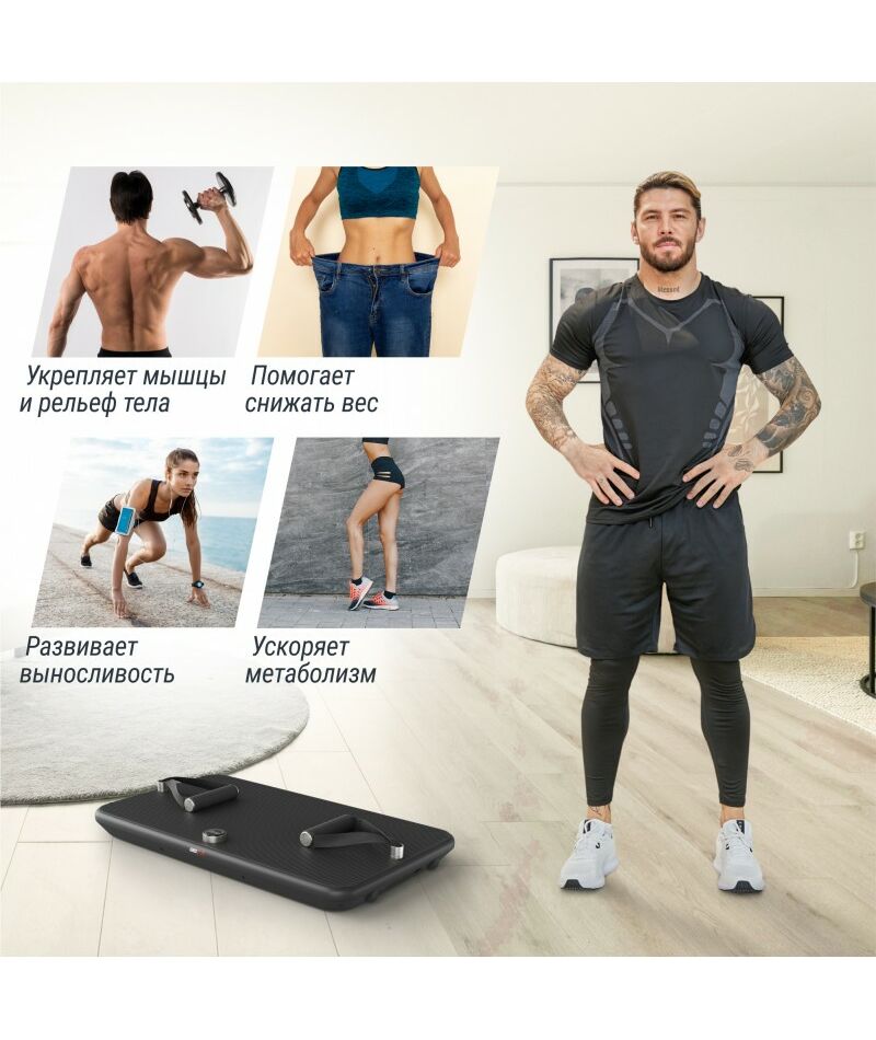 Многофункциональная платформа предлагает широкий выбор тренировок, которые задействуют все группы мышц на 100%. Вы эффективно проработаете ноги, плечи, пресс, мышцы кора, спины и ягодицы. В вашем распоряжении будет более 30 упражнений на различные группы тела.