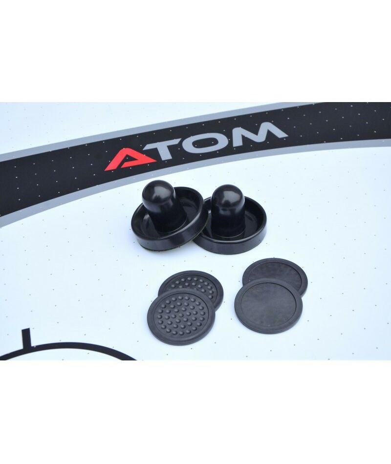 Аэрохоккей «ATOM» домашнего класса снабжен всем необходимым для игры и не требует приобретения дополнительных аксессуаров. У стола мощный компрессор, за счет чего шайбы скользят плавно и быстро. Четкие линии и строгие тона не отвлекают от игры и позволяют сконцентрироваться на ней целиком и полностью.