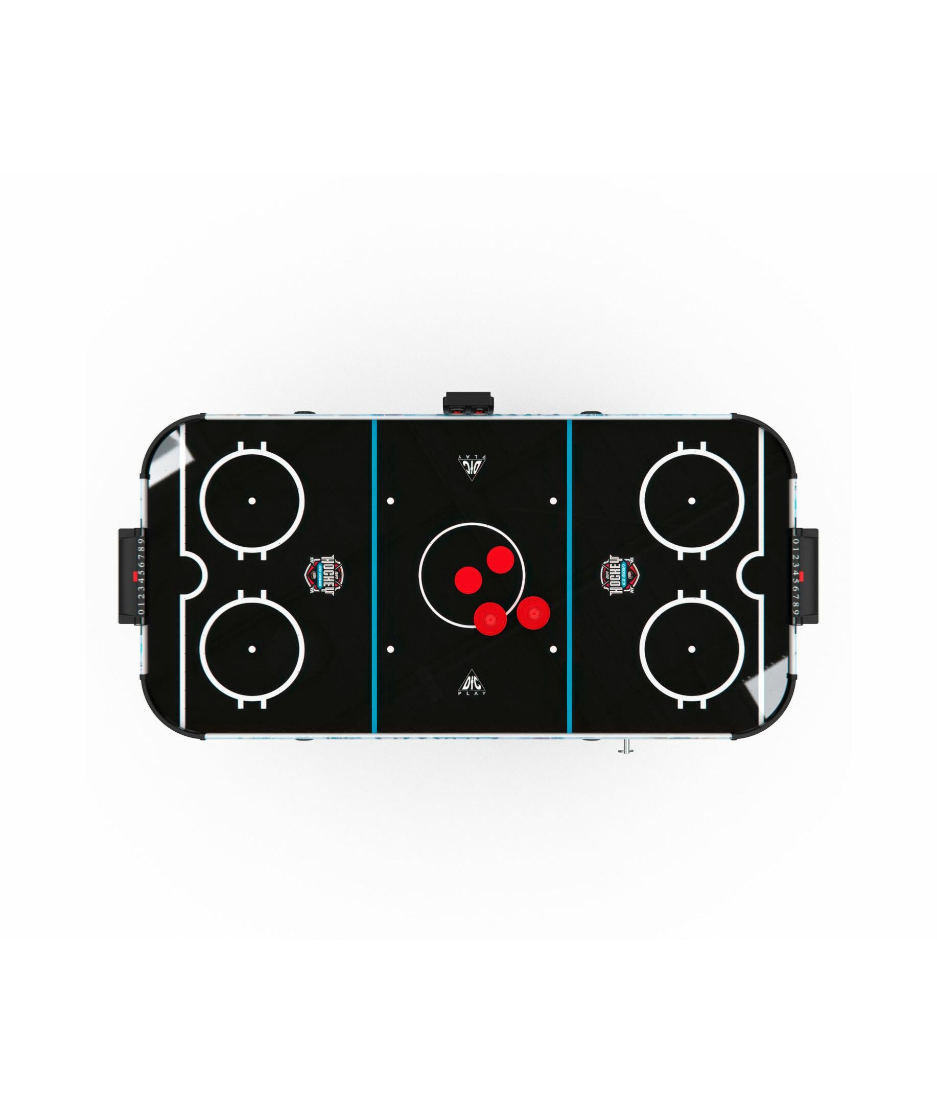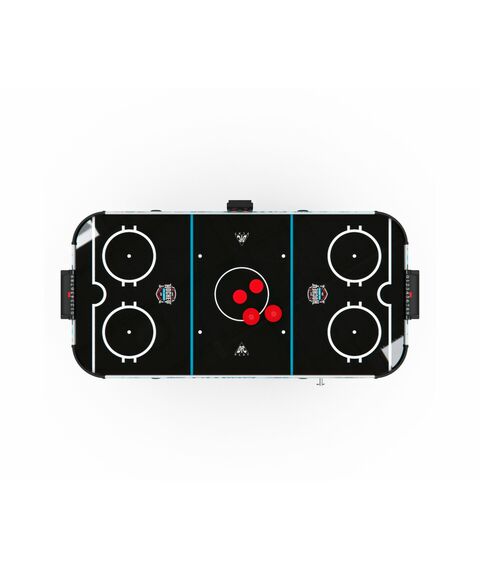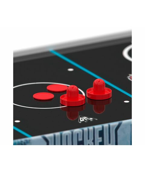 Электронный счетчик на игровом столе облегчает подсчет очков и позволяет следить за ходом игры. В комплекте со столом идут 2 биты и 2 шайбы для начала увлекательной игры.