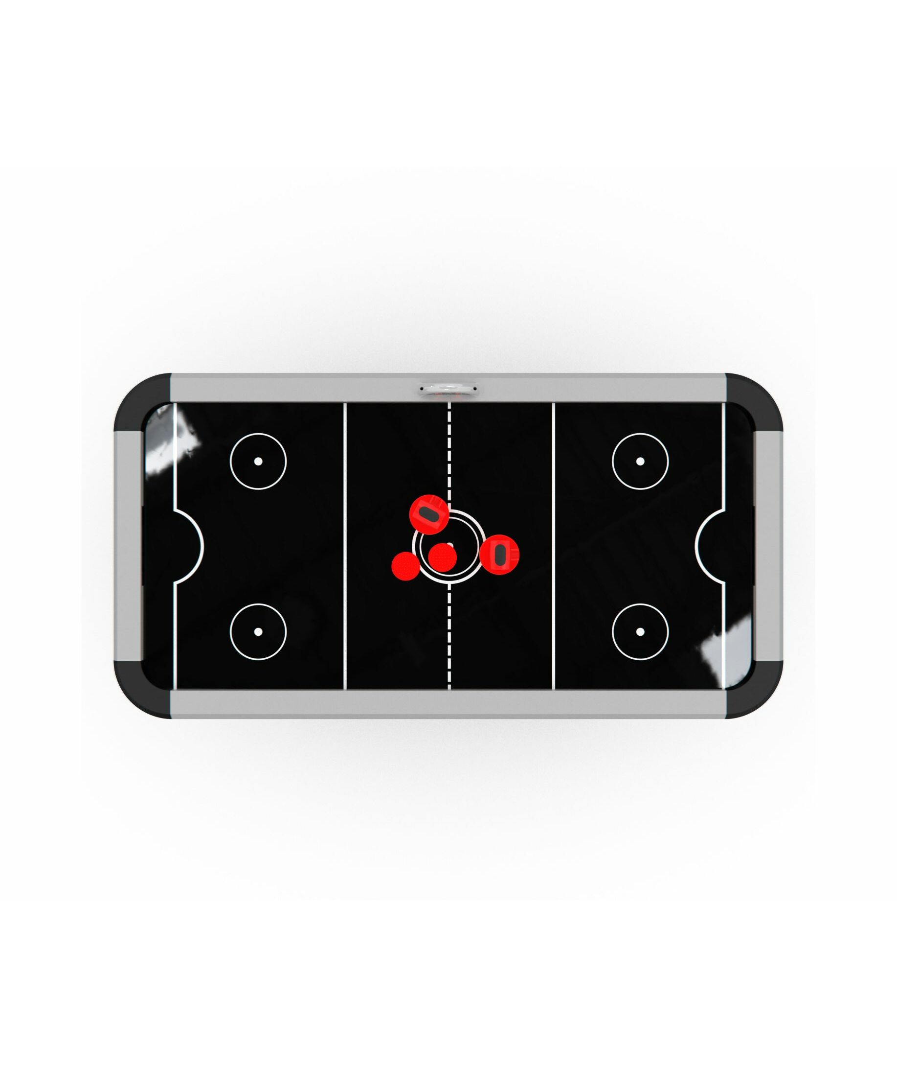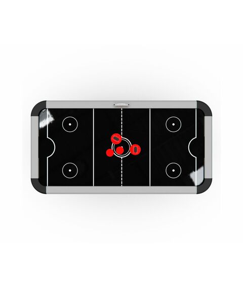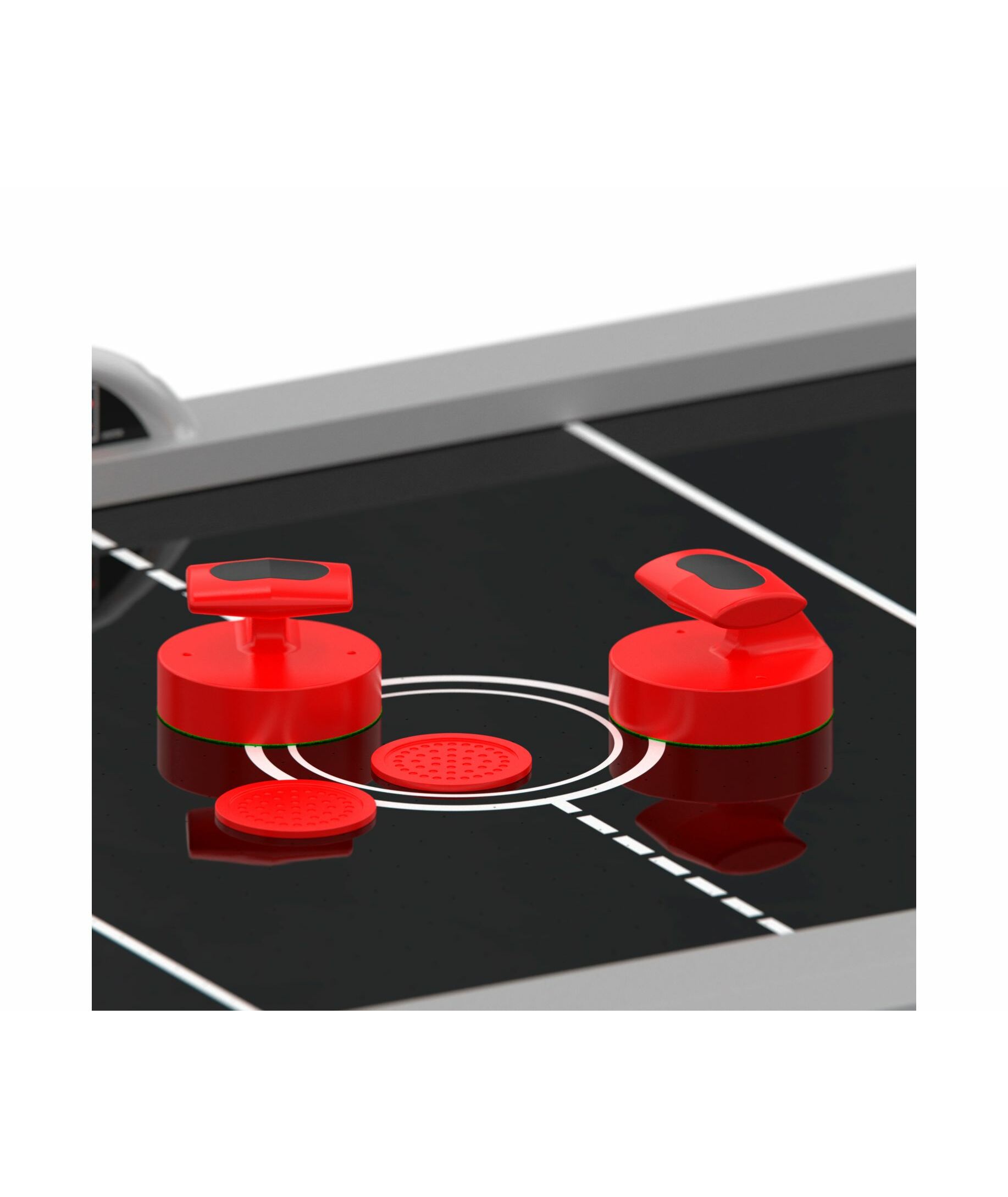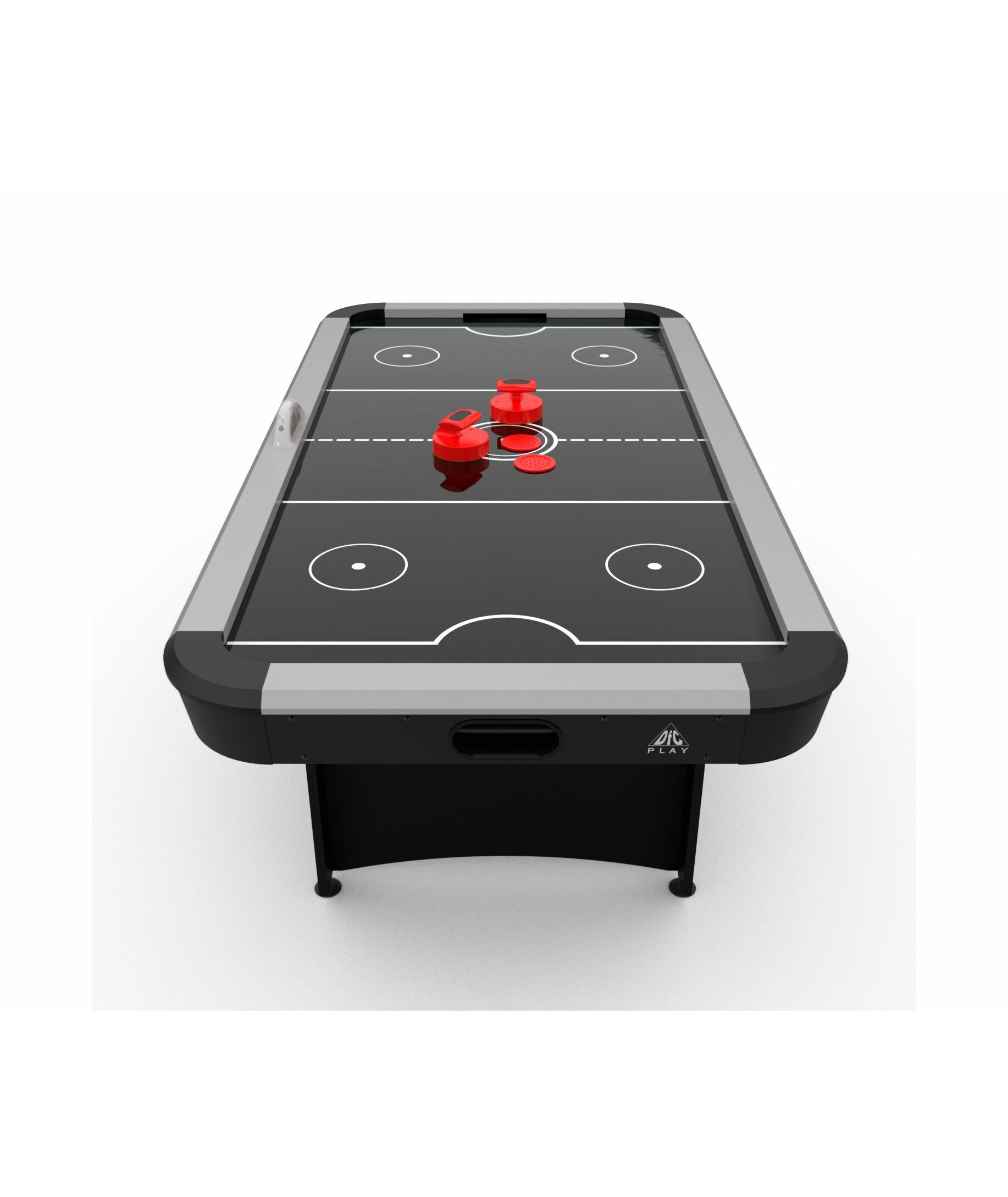 Электронное табло на столе подсчитывает очки, таким образом вы можете легко распределить результаты игры. Благодаря мощному компрессору игровое поле будет наполнено притоком воздуха, что обеспечит плавное движение шайбы.