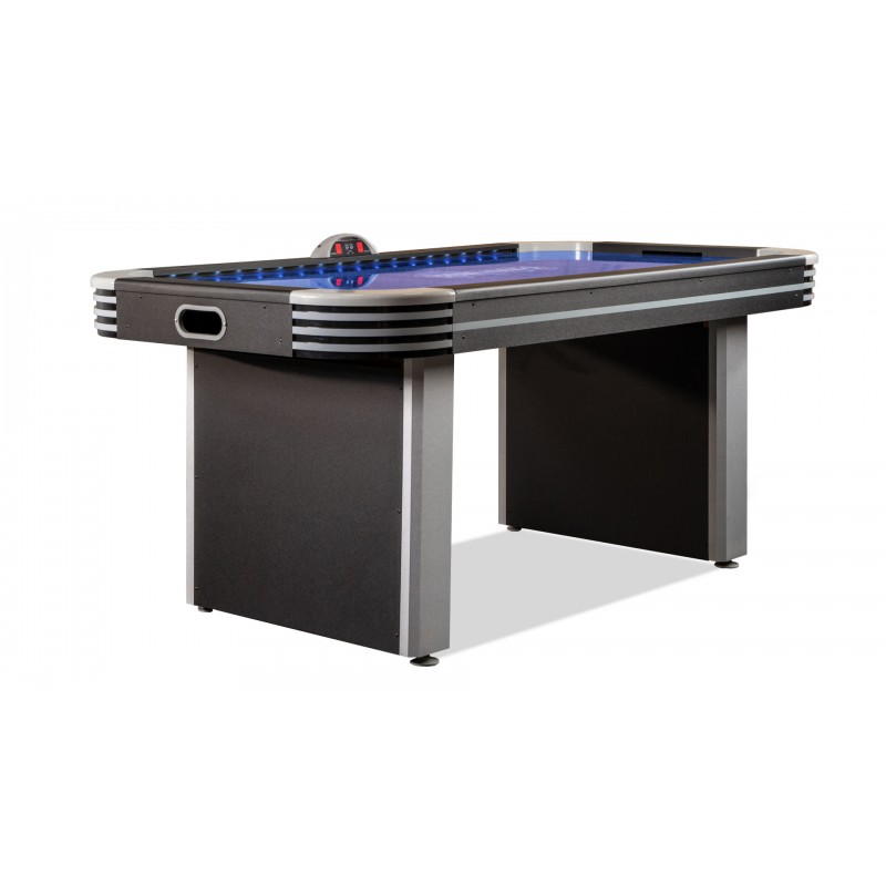 Аэрохоккей «NEON-X» со светодиодной подсветкой, домашнего класса. Снабжен двумя вентиляторами, которые подают воздух через перфорированные отверстия на игровом поле, создавая идеальную воздушную подушку для быстрого полета шайбы.