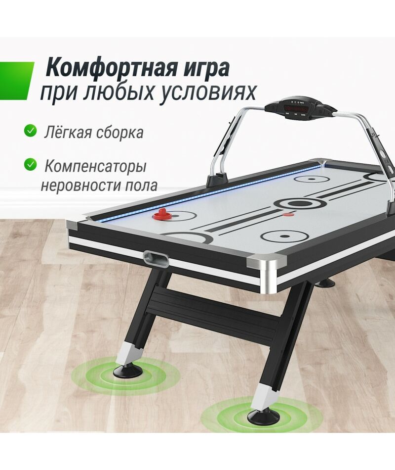 Стол для аэро хоккея оснащен ножками, которые можно легко регулировать по высоте. Это позволяет адаптировать стол под любой рост игроков и обеспечить максимальный комфорт во время игры. Идеально подходит как для детей, так и для взрослых!
