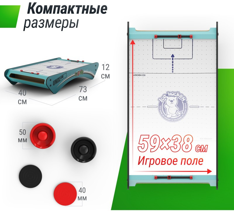 Описание UNIX line Мини Аэрохоккей настольный (73х40 cм)