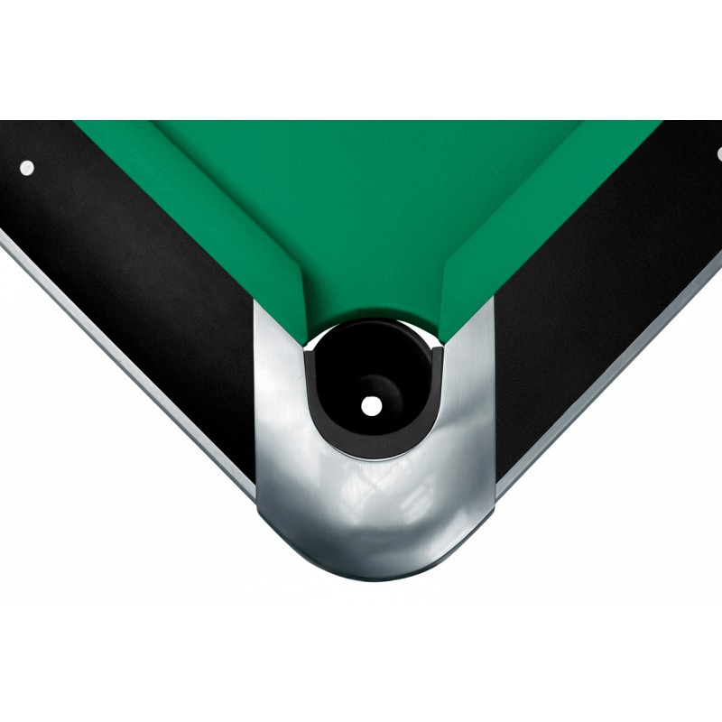 Стол оснащен трехкомпонентным натуральным сланцем Ардезия толщиной 25 мм и высококачественными резиновыми подушками K-55, что обеспечивает плавный, быстрый ход шара и точный отскок для игры профессионального уровня.