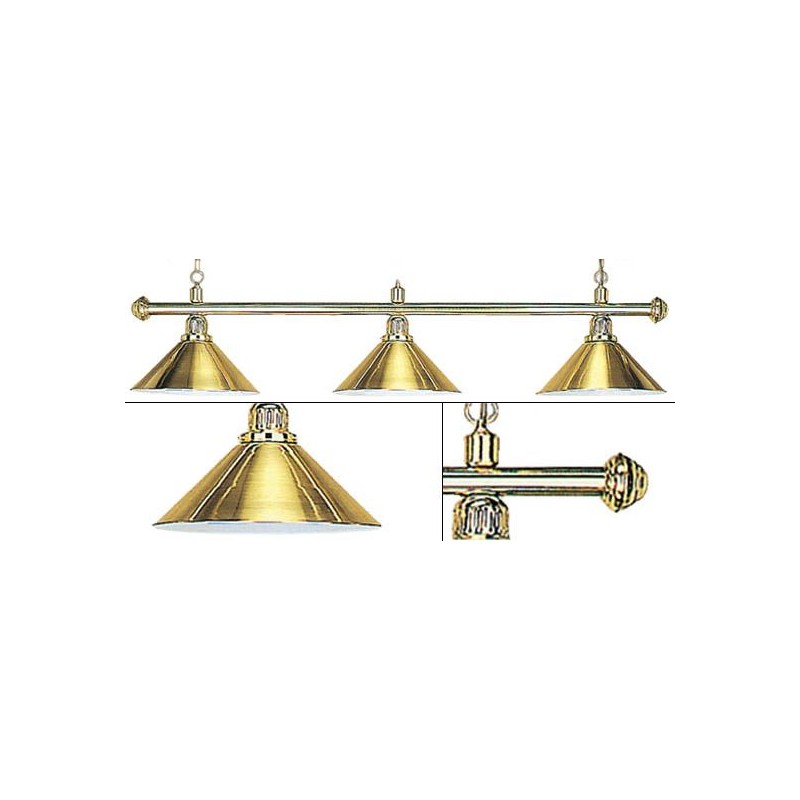Изящная лампа классического дизайна органично впишется в любой интерьер. Устойчивые к механическим повреждениям металлические плафоны на металлической штанге обеспечивают не только качественное освещение игрового поля, но и создадут уютную атмосферу в бильярдном клубе или кабинете. Комплектуется цепочками и чашками для крепления к потолку. Предназначена для равномерного освещения игрового поля 6 - 8 футовых столов.