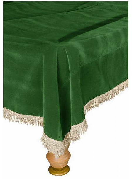 Покрывало для стола 10 ф бархат, зеленое/бежевая бахрома