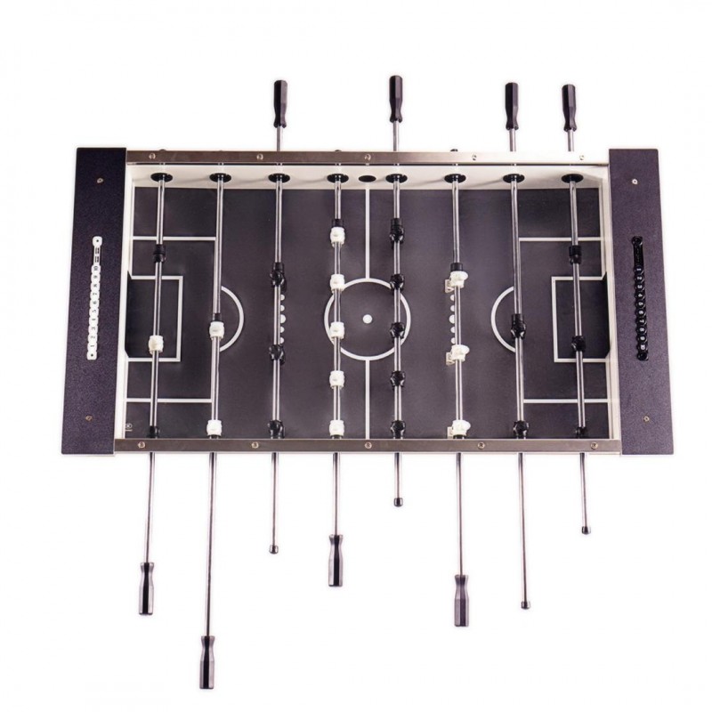 - Накладки из нержавеющей стали по длинному борту минимизируют возможные повреждения, износ и царапины, которые могут возникнуть во время игры, особенно в областях высокой степени износа, таких как борта. Игровое поле с HPL-покрытием имеет идеальную поверхность для высокоскоростной и точной игры, устойчивую к износу и царапинам.