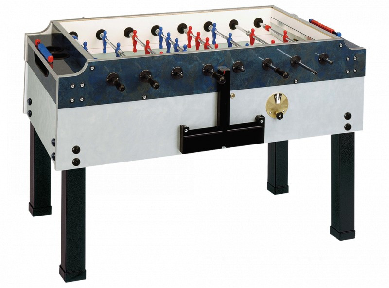 - Отсутствие искажений траектории мяча. За этот аспект отвечают сразу три улучшения конструкции. Идеально ровное игровое поле, сделанное из закаленного стекла и отполированное до сатиновой матовости. Кроме того, между углами и полем убраны ступеньки. Наконец, ворота имеют особый профиль, изготовлены из полимера высокой плотности и армированы стекловолокном.