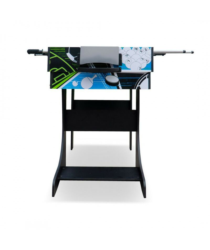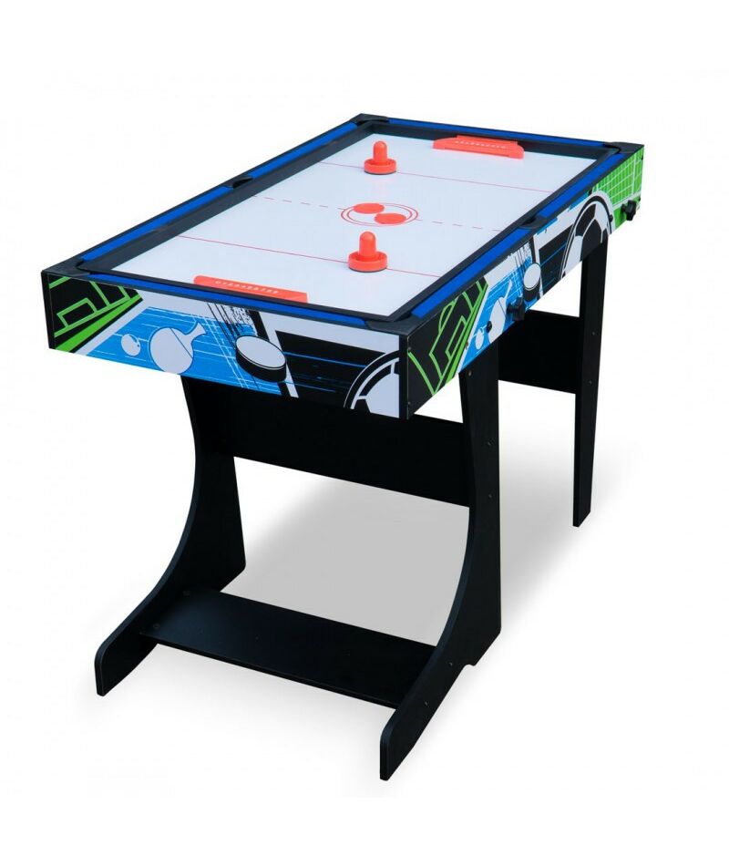 Корпус выполнен в спортивном дизайне, а яркие цвета сменных игровых столешниц создают воодушевленную атмосферу, в которой так и витает дух соревнования! В комплекте есть все необходимые детали и аксессуары: