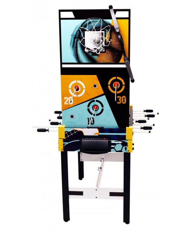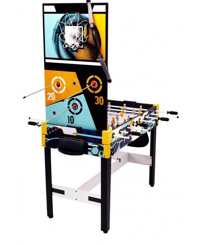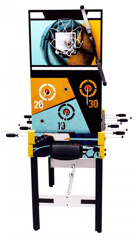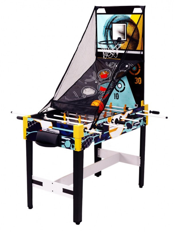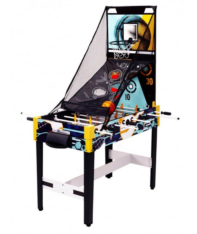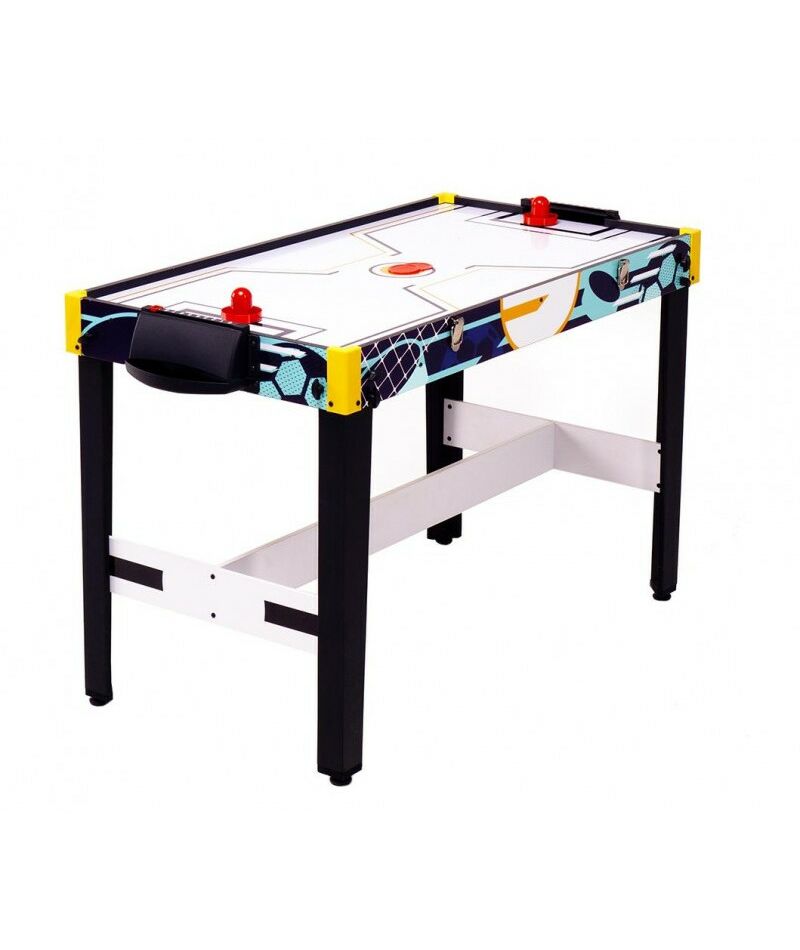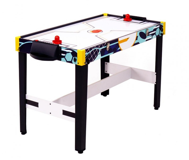 - Аэрофутбол: Сочетание настольного футбола и аэрохоккея для двойного веселья. В комплекте: шайба для аэрофутбола. В игре принимают участие 2 игрока по правилам настольного футбола с включенным полем для аэрохоккея, используя специальную игровую шайбу. Перед началом игры не забудьте приподнять корзину для мячей со сторны обоих игроков;
