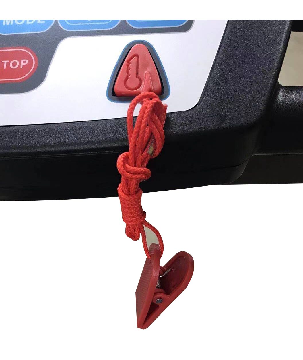 В комплектацию тренажера входит пульт для блокировки тренажера. Для блокировки тренажера, настройте скорость тренировки и нажмите кнопку LOCK на пульте, чтоб тренирующийся случайным нажатием на кнопку не увеличил скорость и не травмировался.