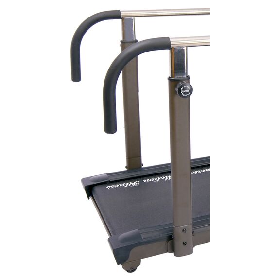 Боковые поручни с регулировкой высоты в 6 положениях от деки дорожки – 70, 81, 89, 97, 105, 113 см – позволяют уверенно опираться на них, если вы устали во время тренировки. Вы также можете снять поручни, если нет в них необходимости, и тренироваться как на обычной спортивной беговой дорожке.
