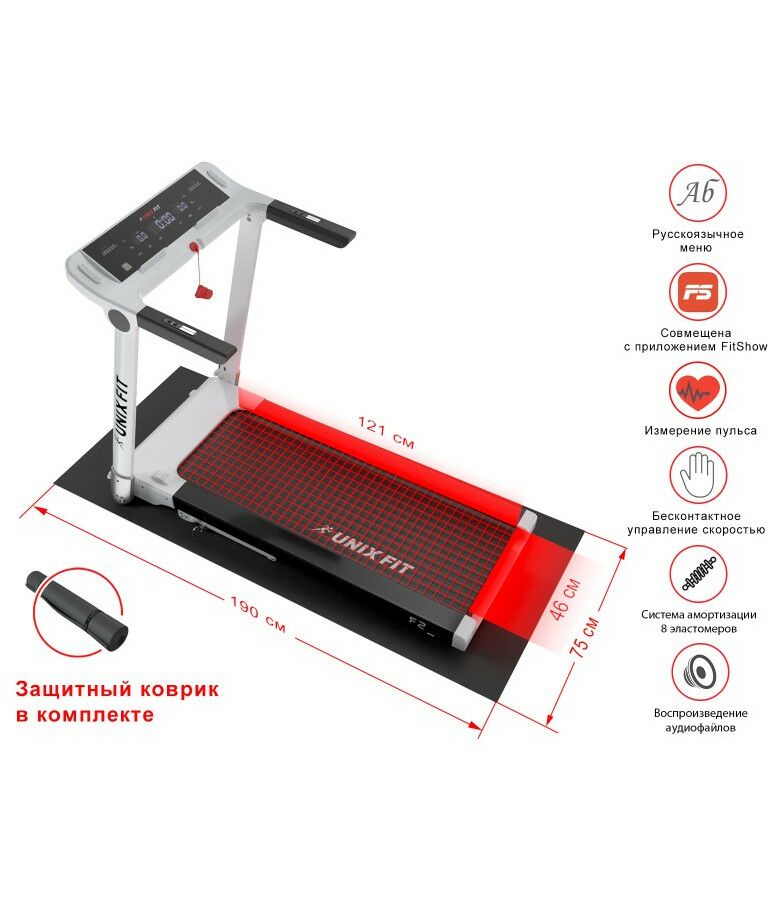 - *Защитный коврик идет в комплекте с тренажером. Для данной модели подходит коврик UNIXFIT 190x75 см.