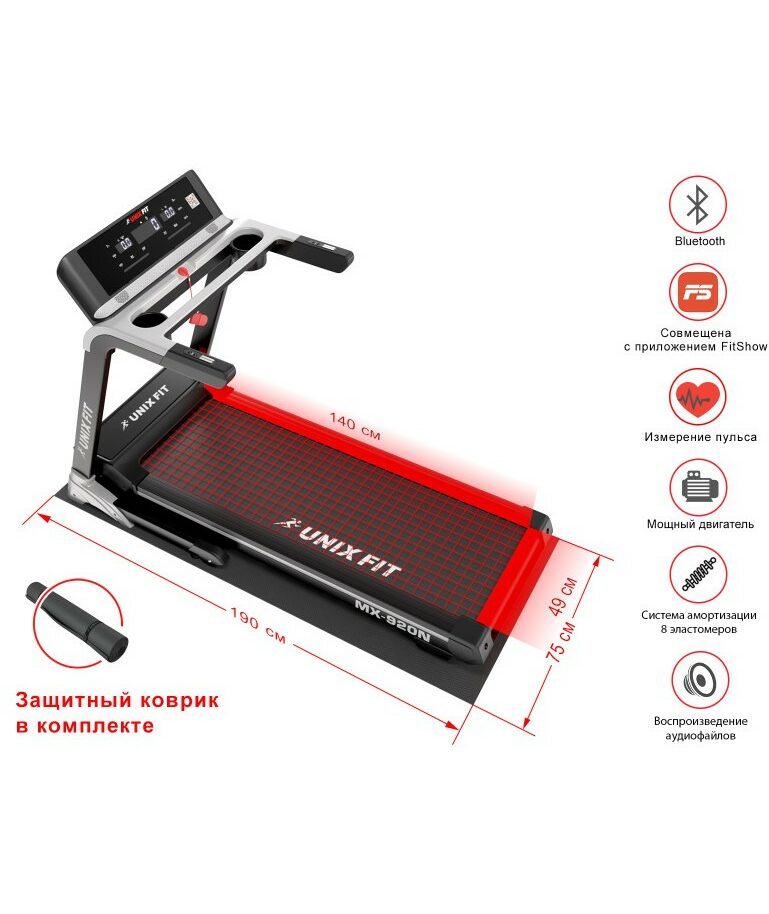 - *Защитный коврик UNIXFIT 190x75 см к беговой дорожке UNIXFIT MX-920N идёт в комплекте!