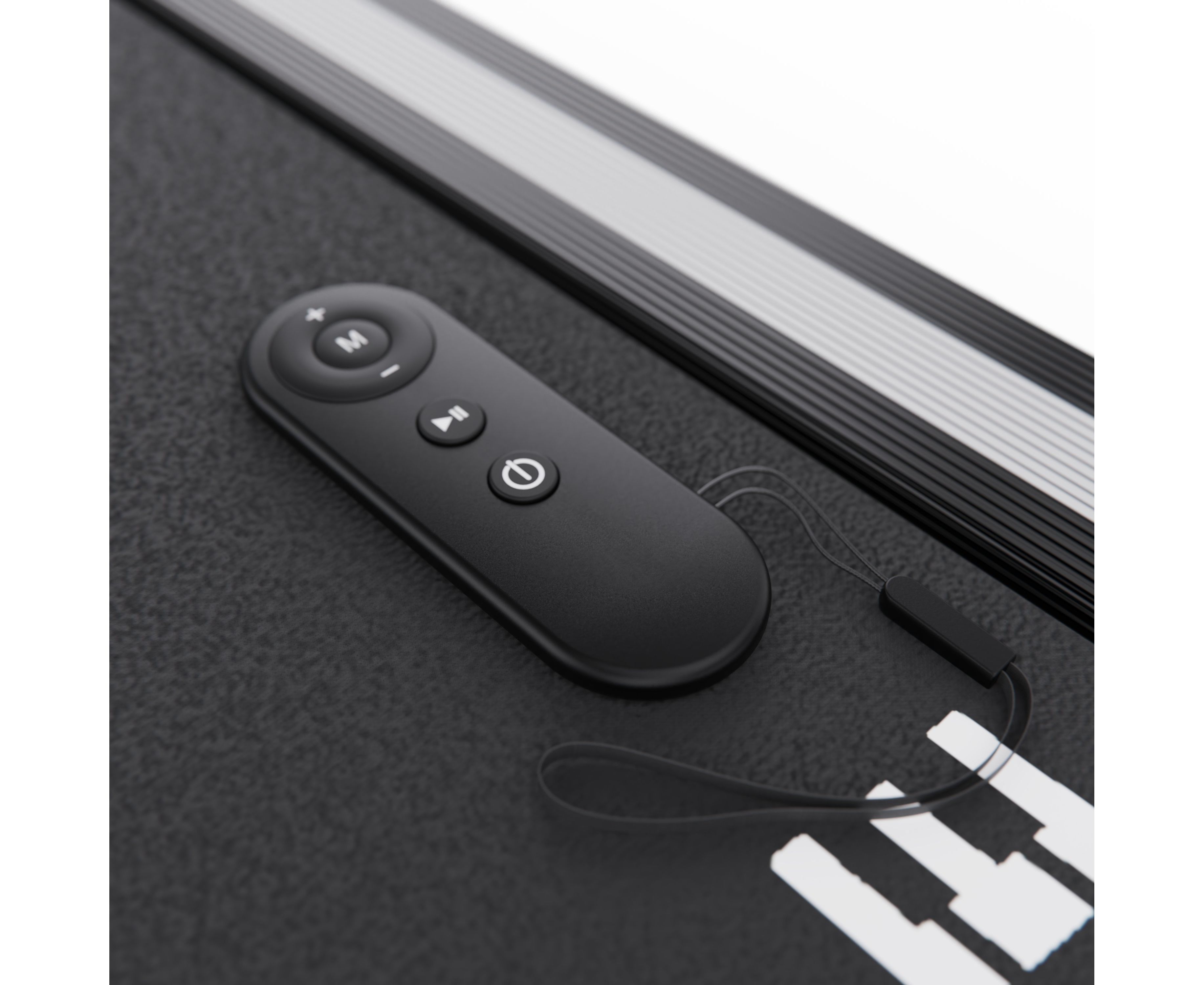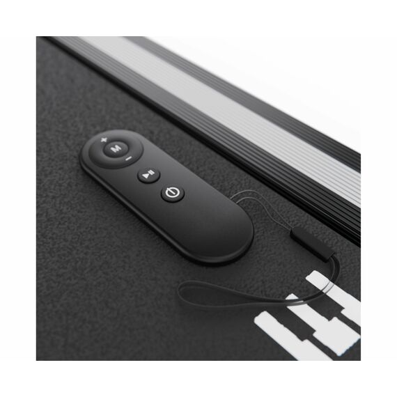 На встроенном LED-дисплее отображаются основные параметры тренировки: время, скорость, пройденная дистанция и количество калорий, что позволяет контролировать процесс занятий. Управление дорожкой осуществляется с помощью пульта дистанционного управления, с которого можно включать и выключать питание, а также регулировать скорость без прерывания тренировки.