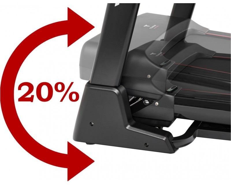Мощный двигатель напрямую связан с максимальной скоростью – дорожку можно разогнать до 22 км/ч. Электрический угол наклона регулируется в диапазоне от 0 до 20%, что также является максимально возможным значением. Амортизационная платформа, скомбинированная из связки 2-х полиуретановых амортизаторов rubber-HEADS™и 8-ми динамических эластомеров VCS™ коммерческого класса, настроена на средне-мягкий уровень жесткости и является одной из лучших на сегодняшний день систем амортизации с минимальной нагрузкой на суставы.