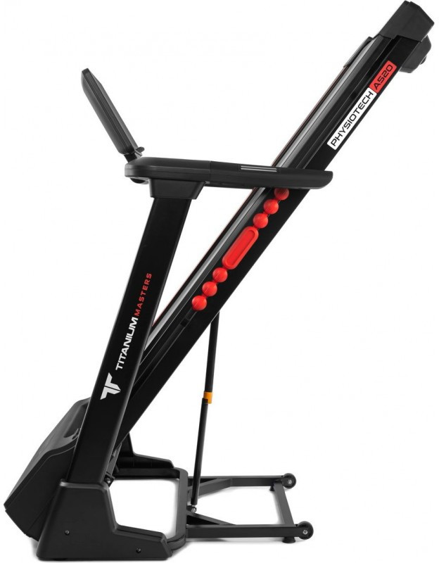 Titanium Masters Physiotech A4520 легко складывается с помощью двухфазной гидравлики easy-DROP™ и перемещается посредством 2-ух транспортировочных роликов. Преимуществом дорожки является система автоматического смазывания. Достаточно раз в несколько месяцев доливать силиконовую смазку в специальную емкость – и далее система будет самостоятельно распределять необходимое количество смазки.
