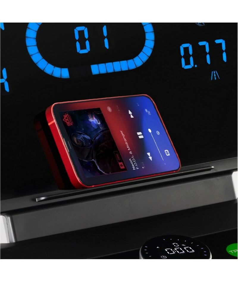 Отдельно стоит сказать про консоль и механику управления. Дисплей состоит из основного LED экрана c профилем тренировки и 4-х дополнительных, выводящих основные параметры тренировки. Часть управления вынесена на джойстик-шайбу – это удобный и современный метод управления. Одновременно сам джойстик-шайба представляет из себя LCD экран, на который выводятся такие параметры как скорость, угол наклона и частота пульса.
