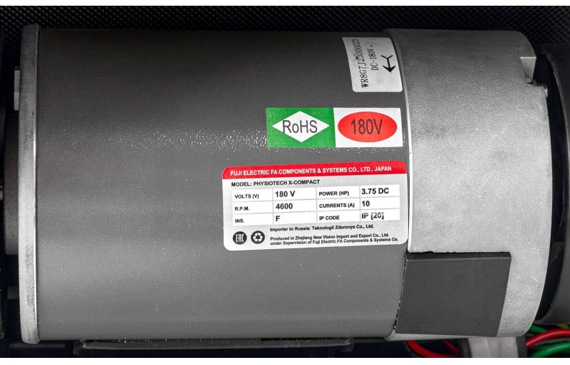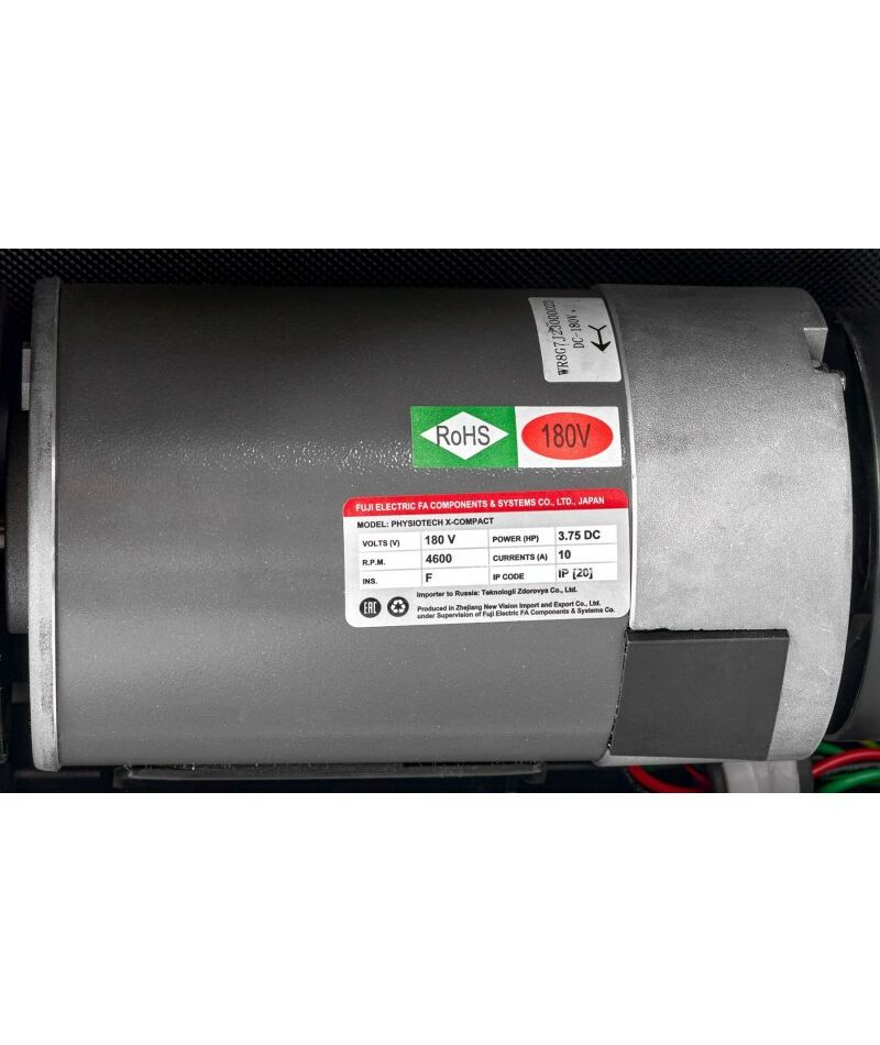 По факту длина X-Compact составляет всего 167 см в рабочем и 99 см в сложенном состоянии, что позволяет выделить под тренажер значительно меньше места, чем необходимо его одноклассникам. По своим техническим характеристикам Titanium Masters Physiotech X-Compact полностью соответствует своему премиальному уровню. Двигатель японской Fuji Electric (Fuji Servo™ C-Series ) с постоянной мощностью 3,75 л.с. и пиковой 6,38 л.с. по сути является переходным в класс полупрофессиональных дорожек. В домашнем использовании он практически не имеет ограничений, максимальный вес пользователя составляет 160 кг.