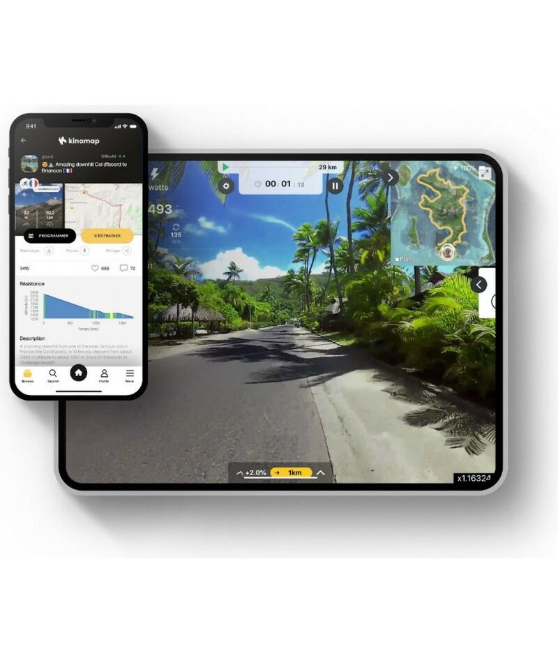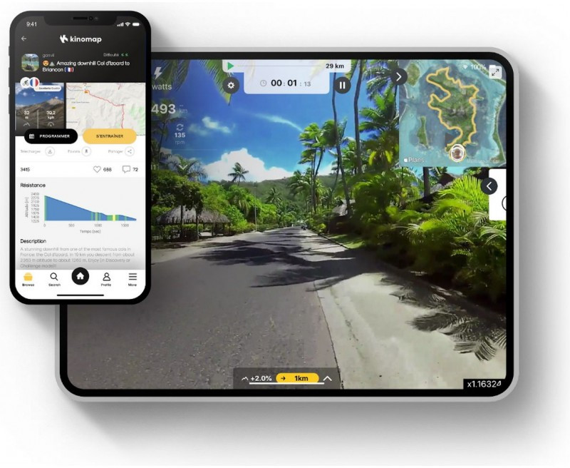 Пользователь может выбирать из тысяч уже созданных другими спортсменами маршрутов. Приложение в режиме реального времени меняет наклон и уровень сопротивления на вашем тренажёре. Получается не менее интересно, чем на реальном маршруте на открытом воздухе: можно путешествовать по разным странам, не выходя из комнаты, и параллельно приводить себя в форму.
