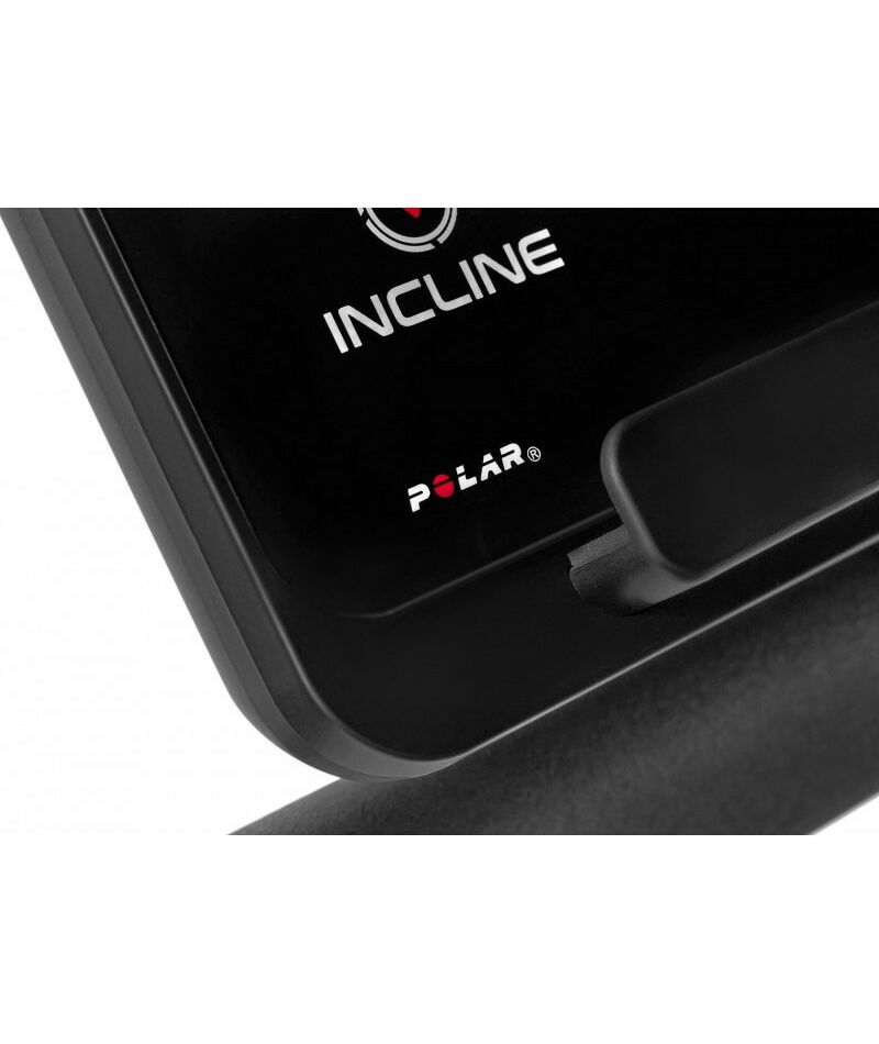 Для точного определения пульса и просто комфортной тренировки в консоль встроен высокоточный беспроводной телеметрический приемник – оригинальный Polar™ (передатчик сигнала в виде нагрудного ремня приобретается отдельно). Разнообразить тренировку поможет мультимедийная составляющая – в дорожку установлены колонки мощностью 3 ватта, а звук воспроизводится с пользовательского смартфона через Bluetooth. Управлять воспроизведением аудио можно непосредственно клавишами консоли.