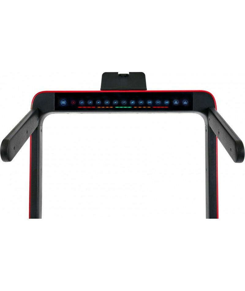 В последнем случае приложение добавляет возможность использования программ обратного отсчета (времени, калорий или дистанции), а также контроль зоны частоты сердечных сокращений. К числу передовых решений относится датчик присутствия пользователя. Дорожка остановится и выключится автоматически если тренирующегося нет на беговом полотне. В дорожку установлены колонки мощностью 3 Ватта, подключение мобильного устройства происходит по Bluetooth соединению.