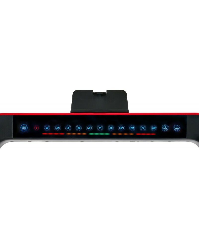 Дополняют форм-фактор специальные цвета окраски – более спокойный коричневый кофейного оттенка и выразительный красный. По своим характеристикам Slimtech C10 ориентирована на массовый сегмент пользователей начального и продвинутого уровня. Максимальная скорость составляет 12 км/ч, этого достаточно для большинства пользователей. Размер бегового полотна 112 на 40 см подойдет для комфортной тренировки. Современная система амортизации на основе 4 среднеразмерных эластомеров edge-V™ настроена на средний уровень жесткости. Тренировочный компьютер представлен двумя LED дисплеями – один на консоли, второй на кожухе моторного отсека. Управлением компьютером происходит посредством сенсорных клавиш, пульта дистанционного управления либо через скачиваемое на мобильный телефон приложение EQiSports.
