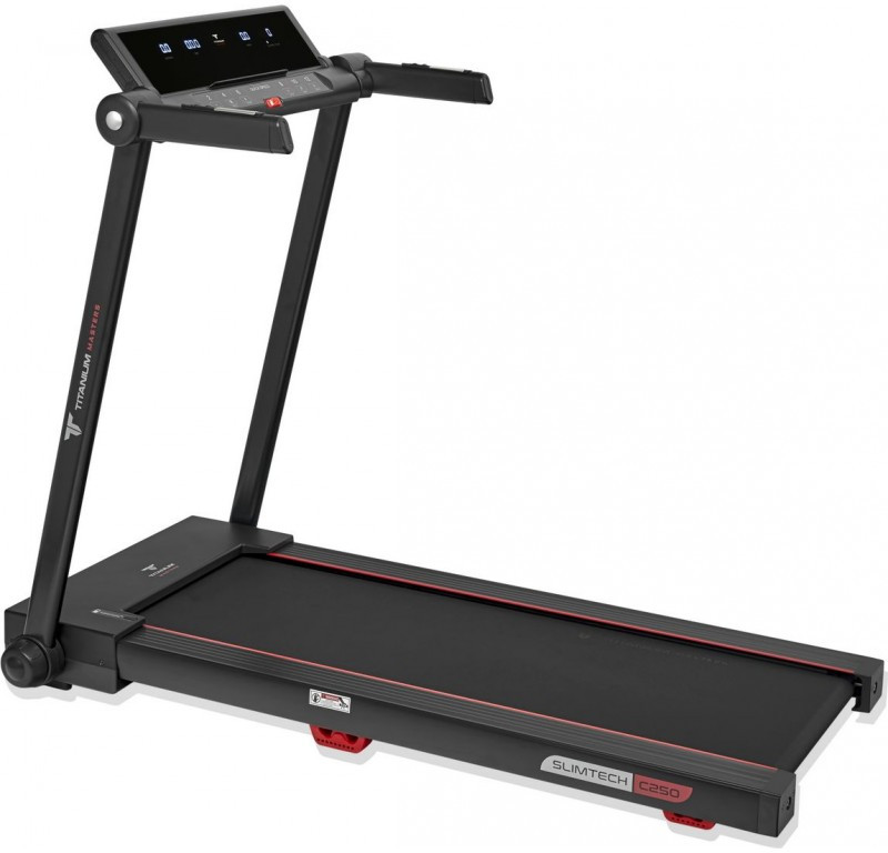 Titanium Masters Slimtech C250 – универсальная компактная электрическая беговая дорожка для пользователей начального и среднего уровня подготовки. Тренажер занимает мало места, удобен в транспортировке и хранении, а также просто и быстро складывается и раскладывается. При всей своей компактности дорожка имеет весь необходимый набор характеристик для полноценной, комфортной и безопасной тренировки.