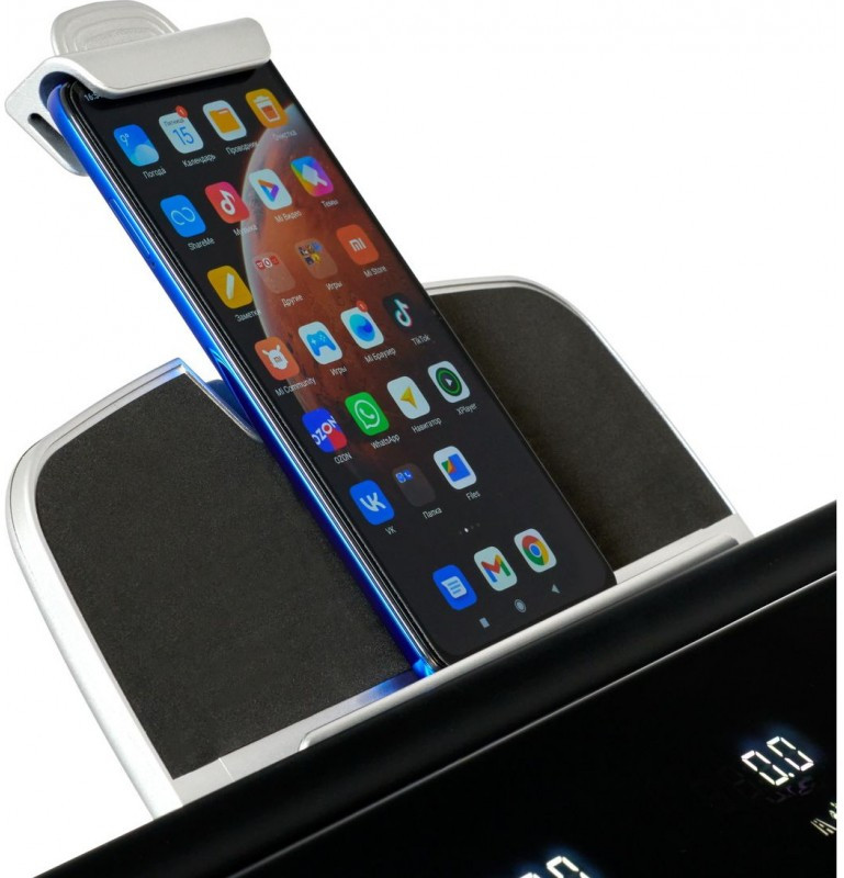 Мультимедийные динамики мощностью 3 Ватта воспроизводят качественный звук с подключаемого мобильного устройства. В передней части консоли расположена подставка под смартфон или планшет, причем зарядить устройство можно прямо на месте через USB порт. Дорожку можно интегрировать со сторонними приложениями, куда относятся Fitshow и Zwift. Первое приложение – Fitshow – является полностью бесплатным. Fitshow предоставляет набор дополнительных тренировочных программ, сохраняет и анализирует статистику. Здесь можно соревноваться с другими пользователями, создать сообщество и добавить друзей, поделиться результатами в соцсетях. При желании можно управлять тренажером прямо со своего смартфона. Если Вы занимаетесь спортом на улице – отлично, данные не пропадут и синхронизируются с результатами тренировки на беговой дорожке. Второе высокотехнологичное приложение – Zwift – является по сути симулятором виртуальной реальности и ориентировано на велосипедный спорт, бег и тренировки на тренажерах. Это действительно классное приложение с невероятным уровнем визуализации и погружения. Дорожка готова к использованию прямо «из коробки», она не требует специальной сборки и дополнительных инструментов.