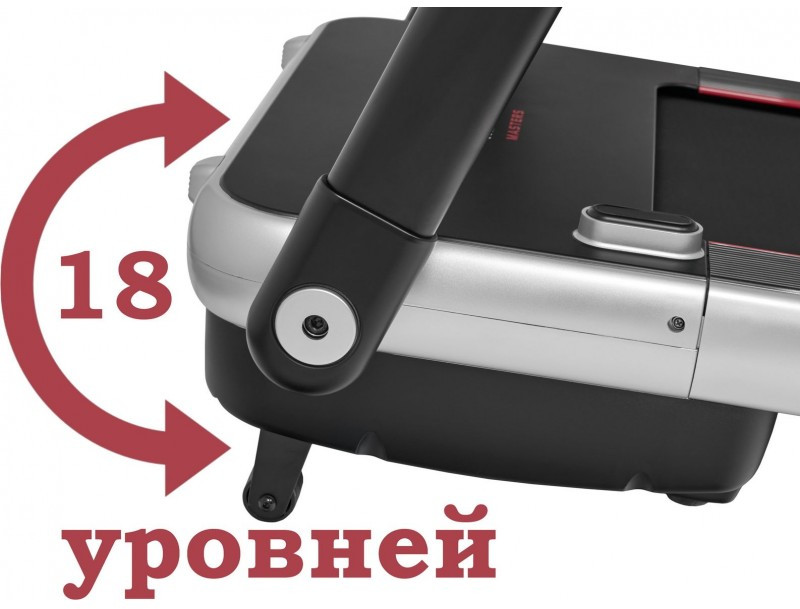 Мотор отлично тянет как на низких скоростях, так и на максимальной для Titanium Masters Slimtech S50 16 км/ч. Это важно не только с точки зрения комфорта, но и безопасности – поскольку положение пользователя на дорожке должно быть максимально устойчивым. Для максимизации эффективности тренировочного процесса можно и нужно использовать электрический угол наклона с 18 уровнями регулировки.