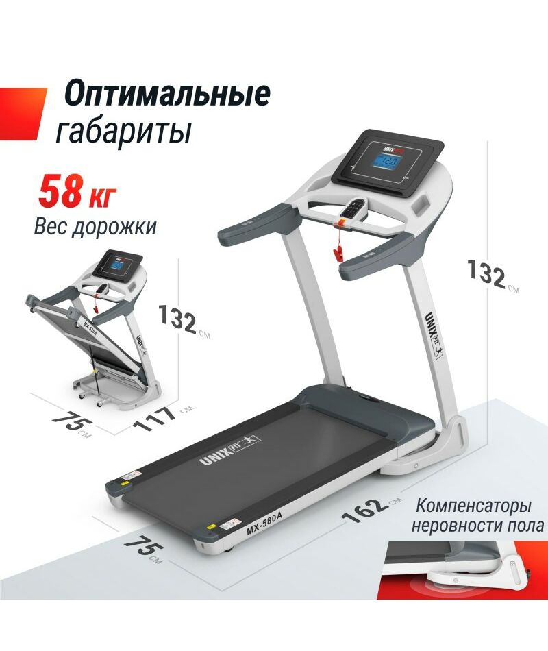 Выбирая беговую дорожку UNIX Fit MX-580A для спорта дома, вы получаете надежный домашний кардио тренажер для улучшения здоровья и поддержания формы. Будь то похудение, повышение общей выносливости или поддержание хорошей физической формы, этот продукт подойдёт для детей и взрослых вне зависимости от уровня подготовки. Инвестируя в собственное здоровье и благополучие с UNIX Fit, вы делаете первый шаг навстречу активному образу жизни!