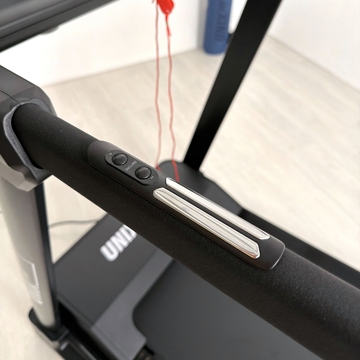 | Особенности | ключ безопасности, для быстрого управления тренировкой и контроля параметров можно использовать умную кнопку-диммер. Возможности кнопки: нажатие/повторное нажатие: включение/выключение тренажёра; вращение по/против часовой стрелки: увеличение/уменьшение скорости. На дисплее кнопки в циклическом режиме отображаются параметры тренировки: скорость, время, расстояние, количество калорий, пульс |
