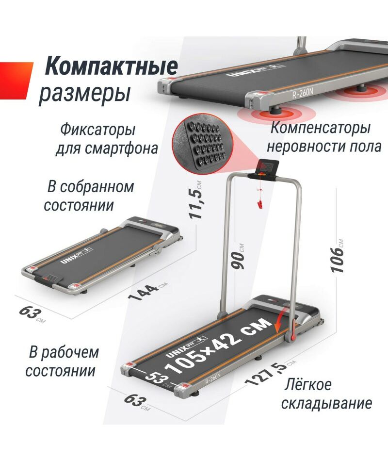 Беговая дорожка UNIX Fit R-260N – отличный выбор для всех, кто хочет оставаться физически активным и поддерживать высокий уровень здоровья и хорошее настроение, не выходя из дома! Каждый шаг на беговой дорожке — это шаг к более здоровому и счастливому “я”, а также вклад в будущее!