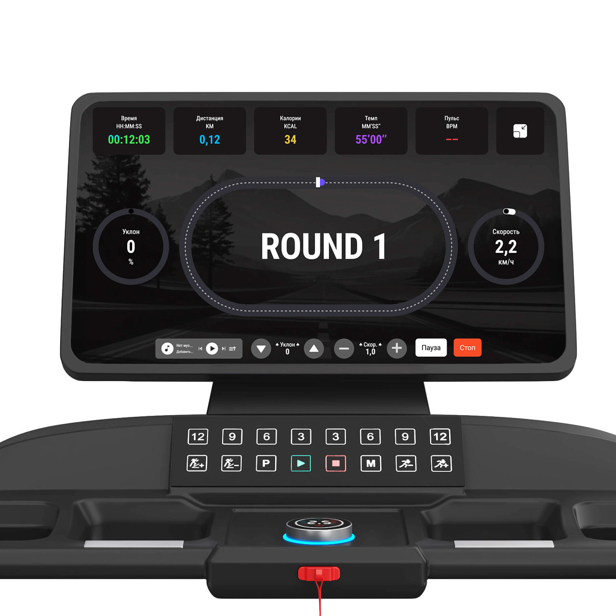 - Большой наклонный сенсорный цветной. Цветной TFT дисплей 21" позволяет отслеживать прогресс в режиме реального времени, а также поддерживает воспроизведение аудио и видео файлов, чтобы вы могли наслаждаться любимым фильмом во время тренировок. Большой сенсорный экран предназначен для управления всеми функциями тренажера: Онлайн-соревнование, Мультимедийные развлечения, Спортивная музыка, Личный центр, Быстрый старт.