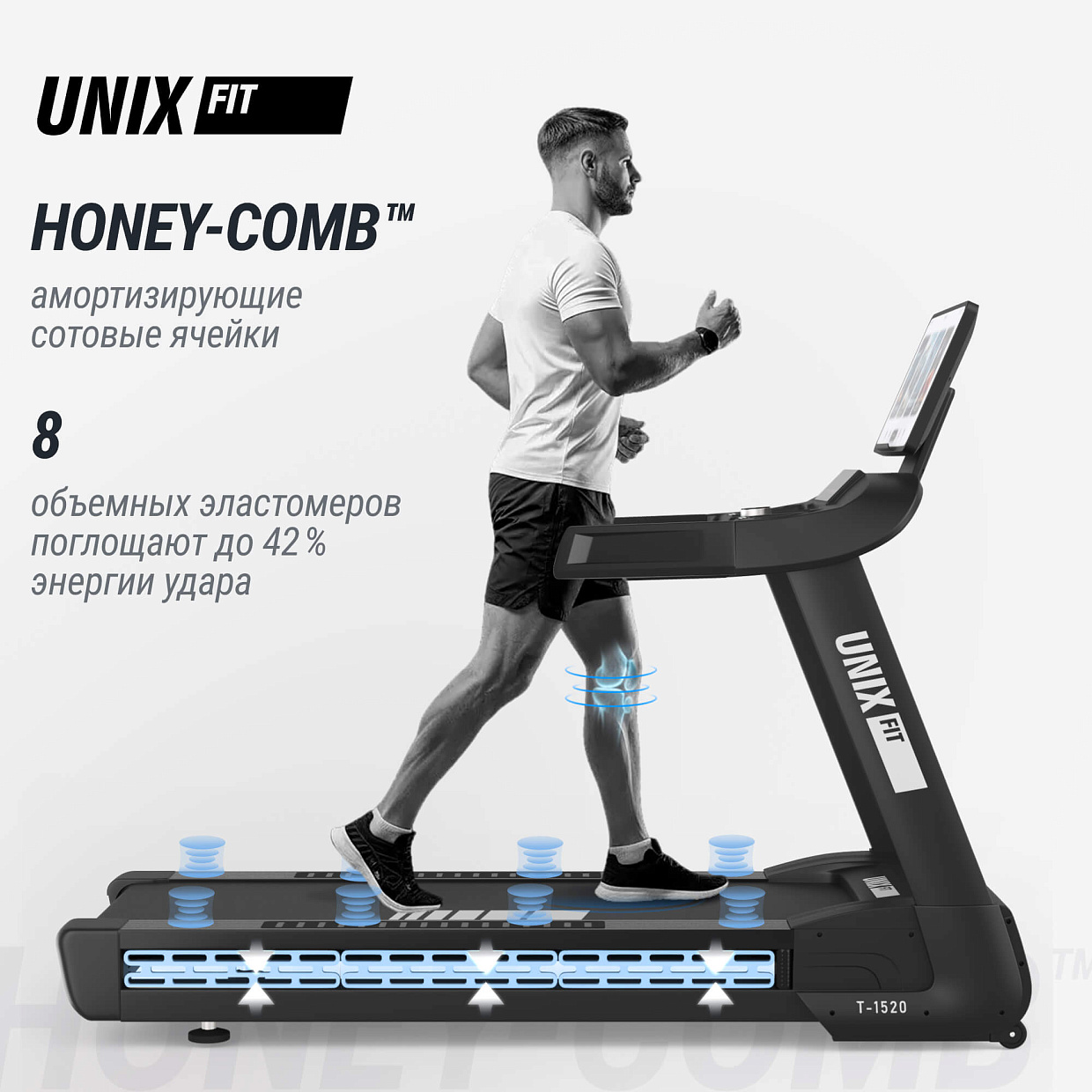 Профессиональная беговая дорожка UNIX Fit T-1520 PRO (21" TFT) с нагрузкой до 220 кг - идеальное решение для профессиональных занятий спортом в коммерческих спортивных клубах с высокой нагрузкой и дома. Эта мощный и надежный тренажёр обеспечит вам комфорт и безопасность на каждом этапе занятия. Электрическая дорожка обладает всеми необходимыми функциями, которые помогут вам достичь своих целей и улучшить свою физическую форму. Усиленная конструкция несущих элементов позволила увеличить гарантийный срок на все элементы беговой дорожки до 2-х лет, на раму тренажера до 5-ти лет. Беговая дорожка идеально подойдет для начинающих спортсменов и профессионалов.