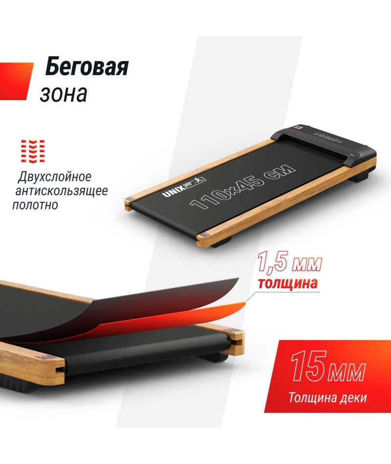 Беговая дорожка UNIX Fit Wood Way 3.0 — это превосходный вариант для ваших домашних тренировок и достижения фитнес-целей. Дорожка UNIX Fit Wood Way 3.0 сочетает в себе элегантный дизайн из экологичного материала, высокую функциональность и компактный размер. Вы сможете наслаждаться тренировкой, не покидая комфортную домашнюю обстановку.