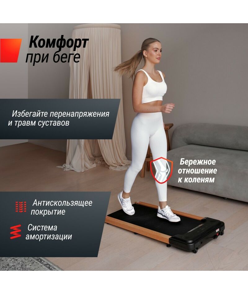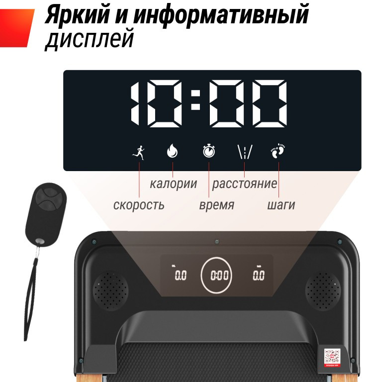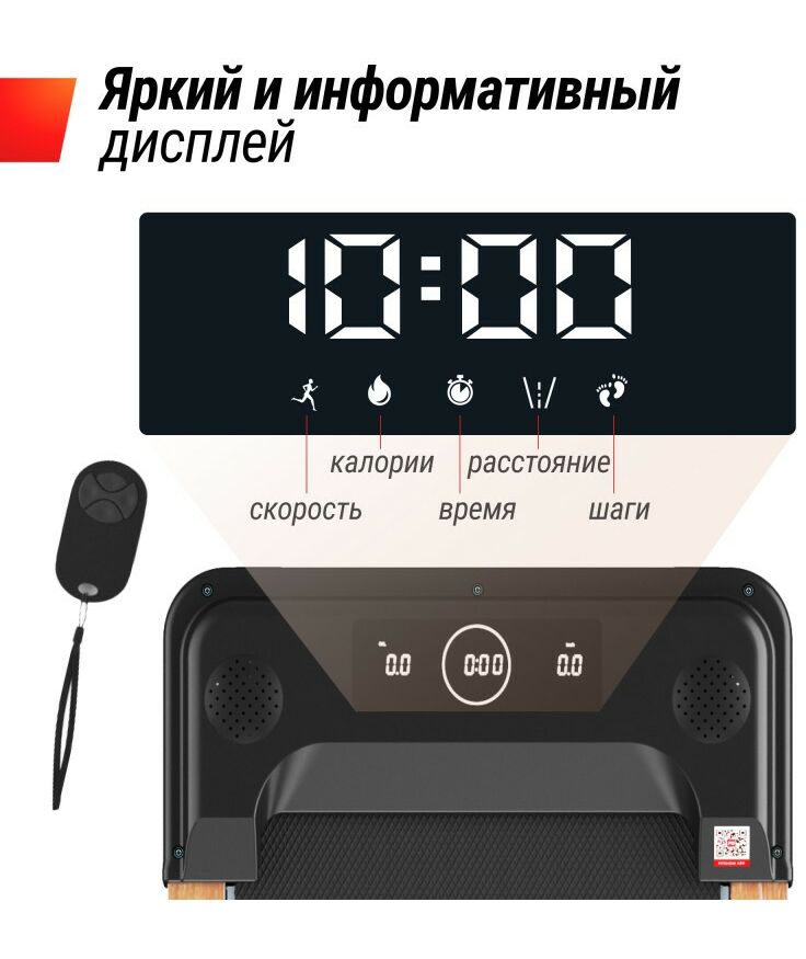Интерактивный дисплей отслеживает время, скорость, дистанцию и калории, чтобы вы всегда знали о своих достижениях. Современный и привлекательный дизайн домашнего кардио тренажера привлекает внимание и станет стильным элементом комнаты. Благодаря компактным размерам, вы можете легко убрать мини дорожку за дверь или под кровать после тренировки и освободить пространство.